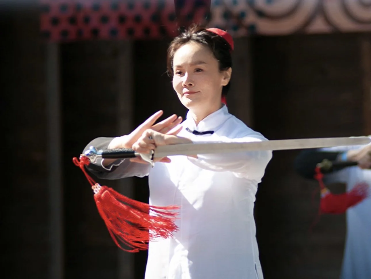 As the 16th‑generation inheritor of the Wudang Sanfeng lineage and the first‑generation inheritor of Wudang Xingyun Sword, Jasmine integrates the Wudang principles of body‑sword unity and cloud‑like flow into her Tai Chi sword teaching. Her Tai Chi sword embodies both internal energy and martial structure while maintaining artistic expression. Students experience the airy elegance of Wudang sword alongside the rooted calm of Tai Chi internal power.